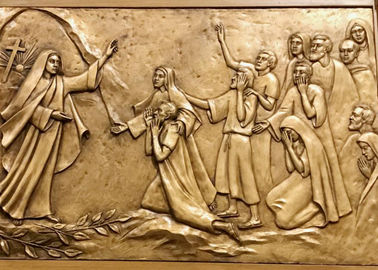 このアートワークは青銅から成っています。それはMagdalaの説教のSt Maryを描写します。 洞窟または墓そっくりのエンクロージャの開始に立って、メリーは挨拶の彼女の左手を上げます;彼女の右手は彼女のウエスト近くの残りにあります。救助の12人の見物人— 7人および5人の女性の表面から— Magdalaのメリーはそれらに言うかもしれません「恐れない」。は表情は震えることの組合せで、驚きおよび悲しみ畏。