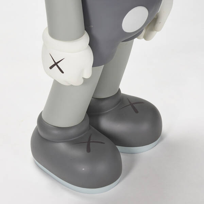 この作品が真に優れているのは仕上げです。深みのある豊かな色合いを実現するために、高光沢塗料を複数回重ね塗りし、視覚的に印象的で、触ると完璧に滑らかです。特徴的なバツ印の目は、KAWSの作品の特徴である神秘的で匿名的な感情を維持しながら、シャープでクリーンなディテールで表現されています。