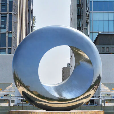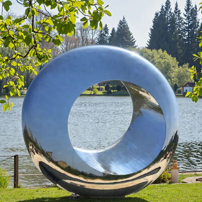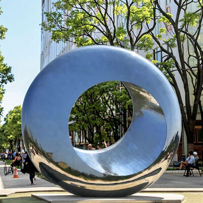 この巨大な鏡磨きステンレス鋼の輪彫刻は 都市公共の空間の中心として 注目されています周囲の都市空間を捉え 再現します都市芸術の特徴として 機能的な公共の装飾と現代美術を融合させています都市環境の現代的な雰囲気を高めながら 没入感のあるインタラクティブな体験を提供.